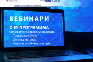Vebinari o pripremi projekata za EU programe 01/05/2020 Vesti Budući da smo polovinom marta, zbog pandemije COVID19 bili prinuđeni da odustanemo od organizovanja obuka za pripremu i sprovođenje projekata, sada smo u mogućnosti da vam te obuke ponudimo u onlajn...