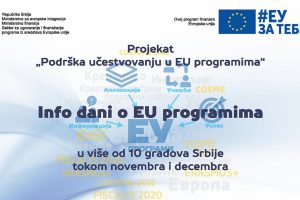 Info dani o EU programima 04/11/2019 Vesti U narednih nekoliko meseci, u više od deset gradova širom Srbije, projekat će organizovati jednodnevne informativne radionice o EU programima - HORIZON 2020, Creative Europe, Europe for Citizens, EaSI, REC,...