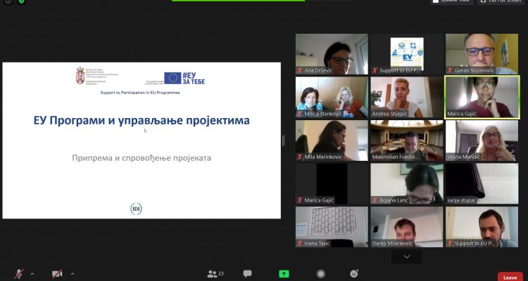 Trening kamp za regionalne razvojne agencije 01/10/2020 Vesti Više od 25 predstavnika regionalnih razvojnih agencija uspešno je završilo obuku za trenere i poslovne konsultante u oblasti pripreme predloga projekata za EU programe, koju je organizovao projekat „Podrška učešću u EU programima“. Cilj trodnevnog trening kampa, koja je prvi put organizovana onlajn, bio je da predstavnici agencija steknu veštine trenera i poslovnih konsultanata, kako bi svoje znanje mogli da prenesu dalje. Obuka je sprovedena u saradnji sa Ministarstvom privrede i Razvojnom agencijom Srbije, a uz podršku Ministarstva za evropske integracije. Ideja je da takav vid usluge trenera i konsultanata postane deo standardizovanog seta usluga Razvojne agencije za mikro, male i srednje privredne subjekte i preduzetnike. Eksperti projekta „Podrška učestvovanju u EU programima“ sa velikim iskustvom u pripremi i realizaciji brojnih projekata, preneli su svoje znanje i veštine, koristeći se različitim trening metodama poput – prezentacije, praktičnih vežbi i zajedničkog rešavanja zadatih primera. Na taj način učesnici su imali mogućnost ne samo da slušaju predavanje, već i da vrlo aktivno učestvuju u rešavanju praktičnih problema na koje mogu naići u svom trenerskom/konsultantskom radu. Prva dva dana obuke bila su posvećena razvijanju generalnih veština za trening o ključnim EU programima koji su dostupni u Srbiji, sa akcentom na transfer veština za obuku na učesnike. Poslednjeg dana trening kampa predstavnici regionalnih razvojnih agencija bavili su se instrumentom za MMSP koji postoji u okviru programa Horizont 2020, njegovim specifičnostima i praktičnim savetima za korišćenje. U novembru će biti održan još jedan trening kamp za narednu grupu regionalnih razvojnih agencija, kako bi u svakoj od njih određen broj ljudi bio osposobljen za posao trenera i poslovnog konsultanta za pripremu projekata za EU progame. Svi učesnici obuke dobiće o potvrdu o stečenim znanjima i veštinama.